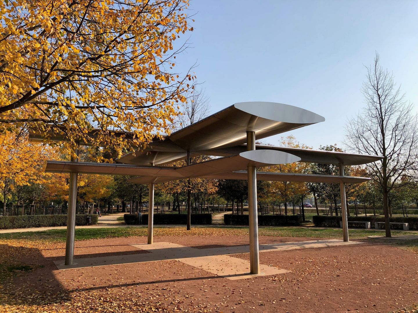 At the sculpture “Heaven’s Cross” you are in the heart of the Luthergarten. Take a look around: Do you see the petals of the “Luther Rose,” Luther’s coat of arms, set into the pavement?